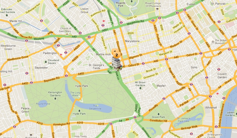 From London Heathrow, we recommend the Heathrow Express: this runs direct from the airport to London Paddington in just 15 minutes (20 from Terminal 5) and there’s a train every quarter of an hour. The Gatwick Express runs a similar service into London Victoria. From either terminus, you can take the Underground to Marble Arch.