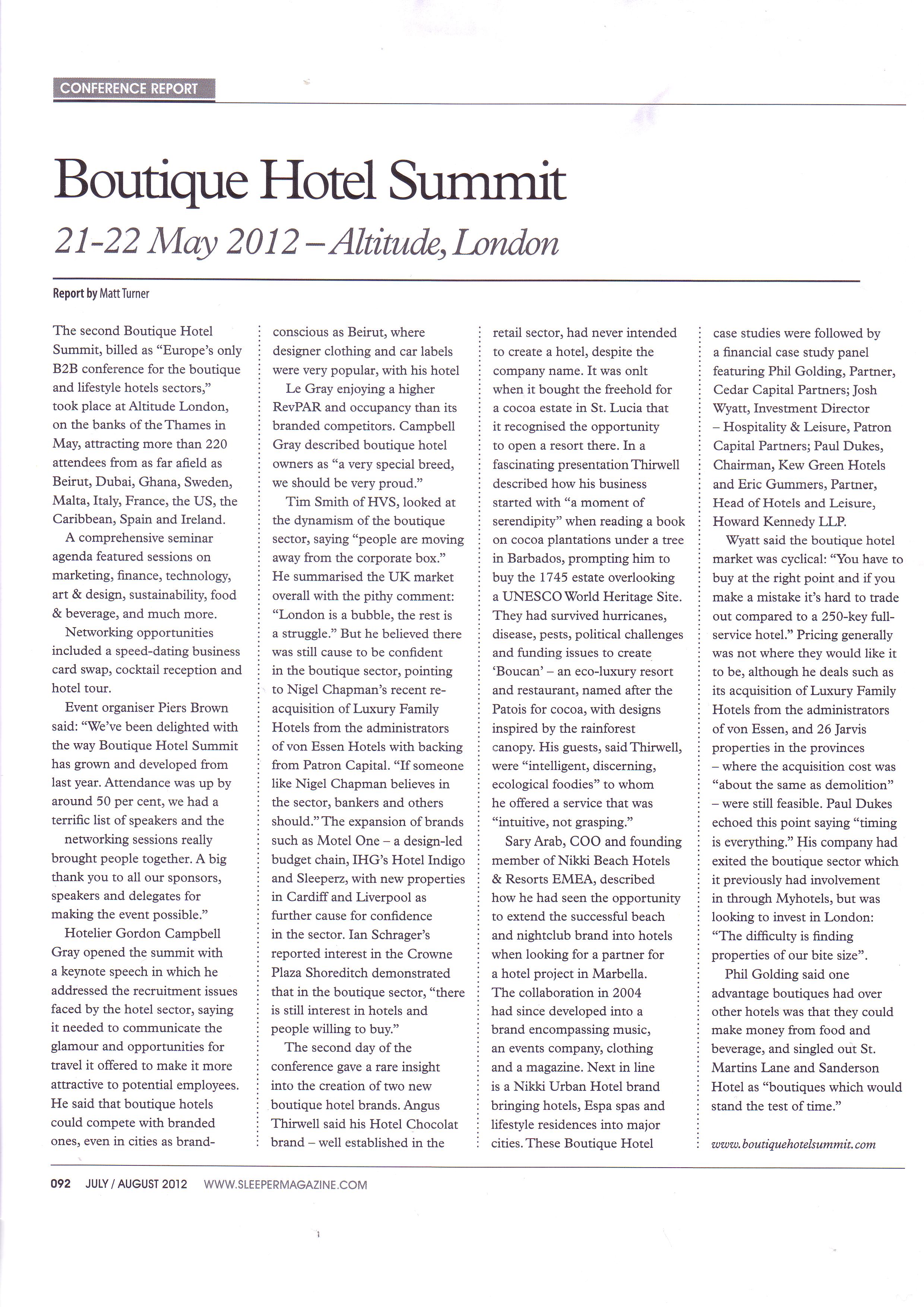 Press coverage of Boutique and Lifestyle Hotel Summit